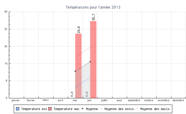 | juin | 0.0 °C | 9.6 °C | 35.7 °C | 23.6 °C | 16.9 °C | 0.5 km/h | 9.5 km/h | O |